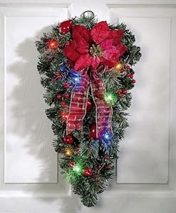 Lighted Poinsettia Door Decoration