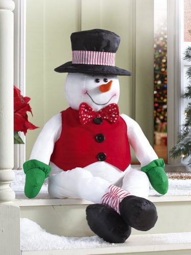 How about a life size Frosty The Snowman. He stands up, or sits down on your front porch to welcome guests to your home for Christmas! There is also a snowman porch light cover. More front porch Christmas decorations and ideas to add a holiday theme to the front of your house.